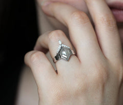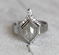 Modern Hexagon Diamond Ring With White Diamond Crown